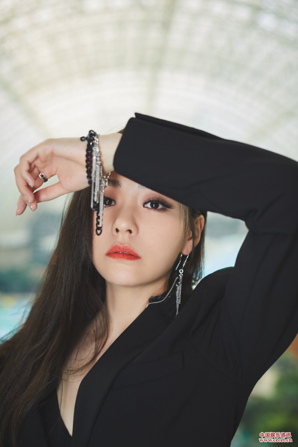 張靚穎黑色套裝搭配水鉆閃亮流蘇又酷又御