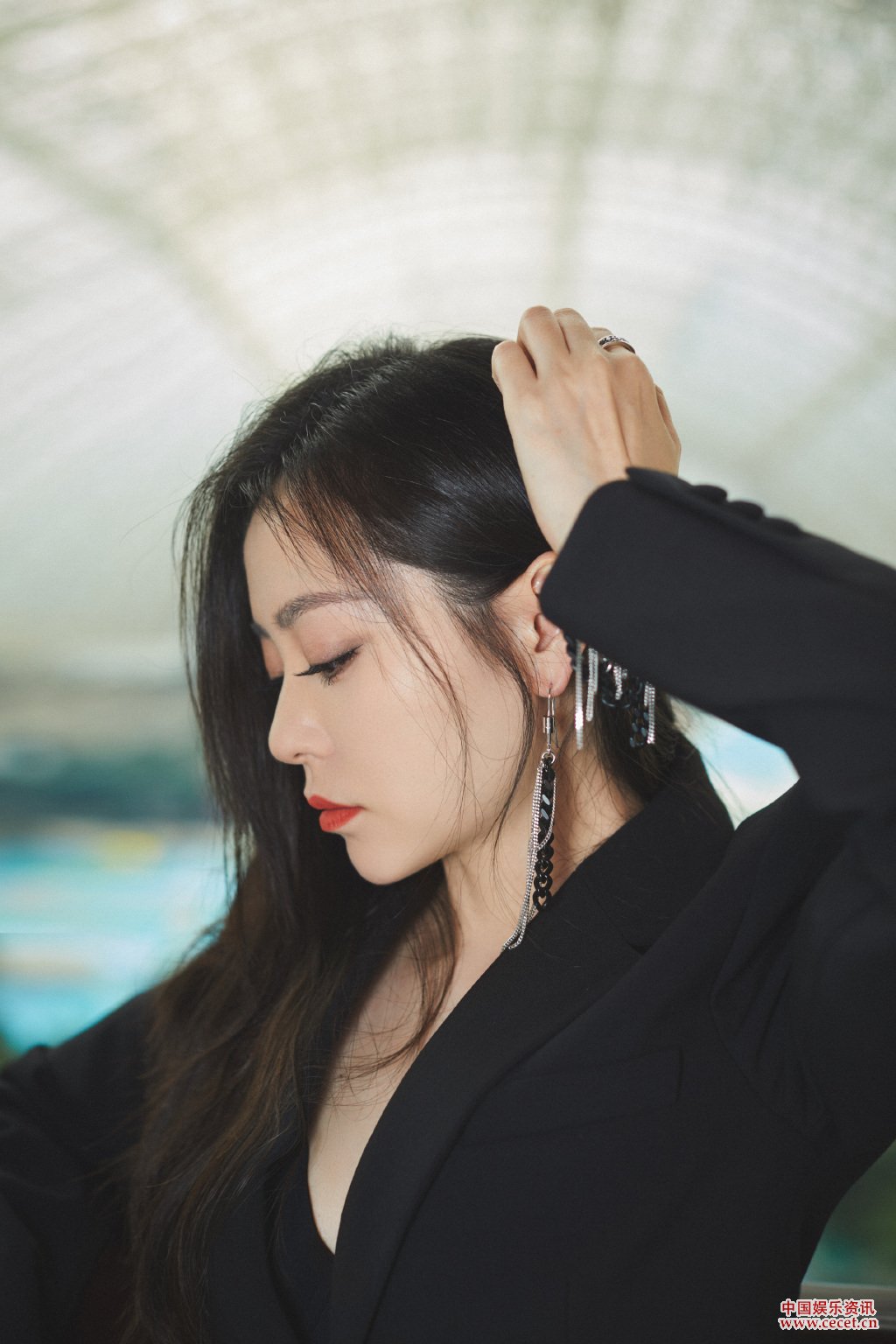 張靚穎黑色套裝搭配水鉆閃亮流蘇又酷又御