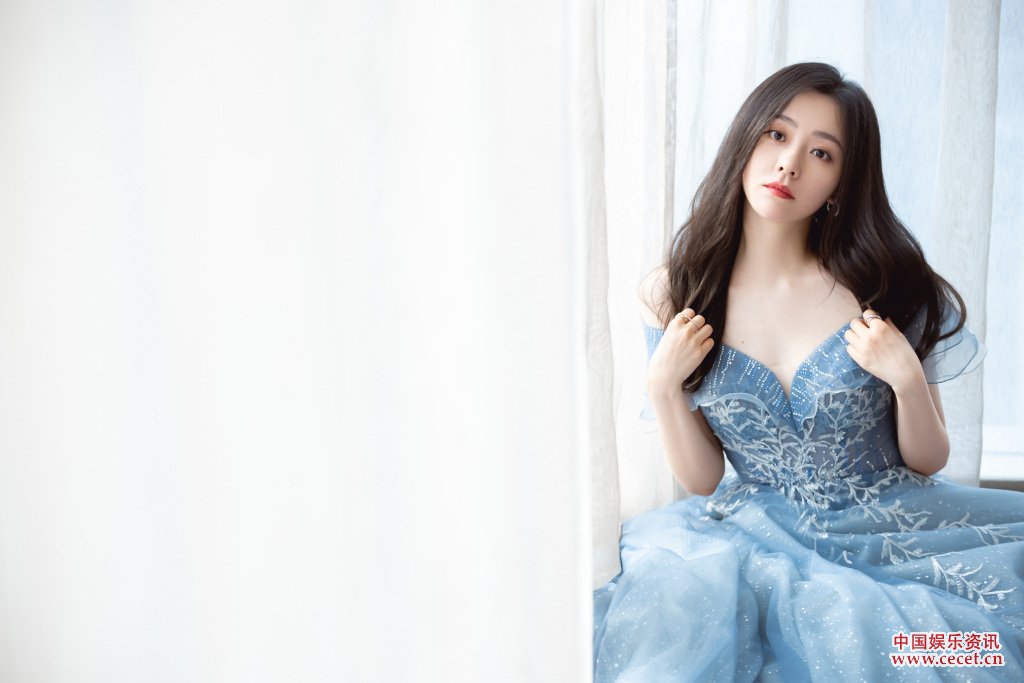 張靚穎霧霾藍抹胸仙女裙 沉靜優(yōu)雅悅動(dòng)心弦