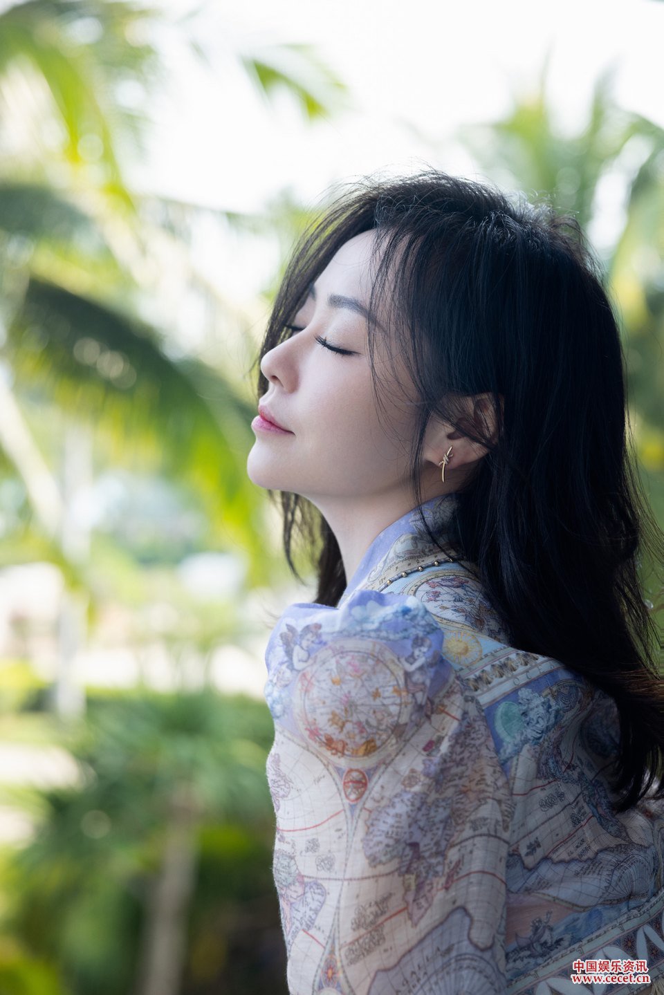 張靚穎佇立海邊吹海風(fēng) 肩披霞光享浪漫自由