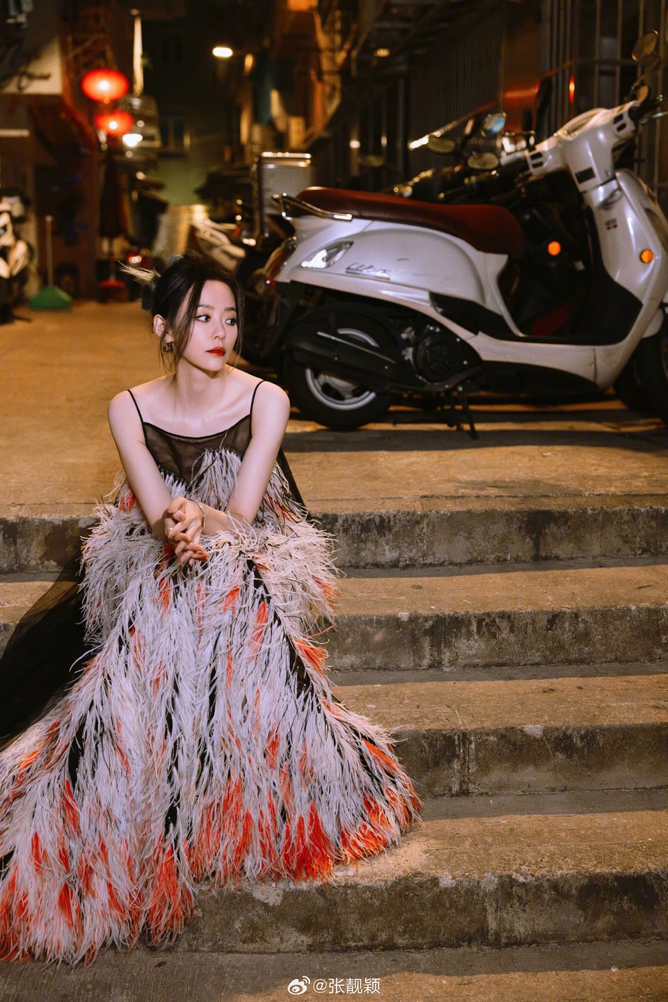 張靚穎粉羽翩翩漫步街頭 光影朦朧雕琢溫柔意蘊