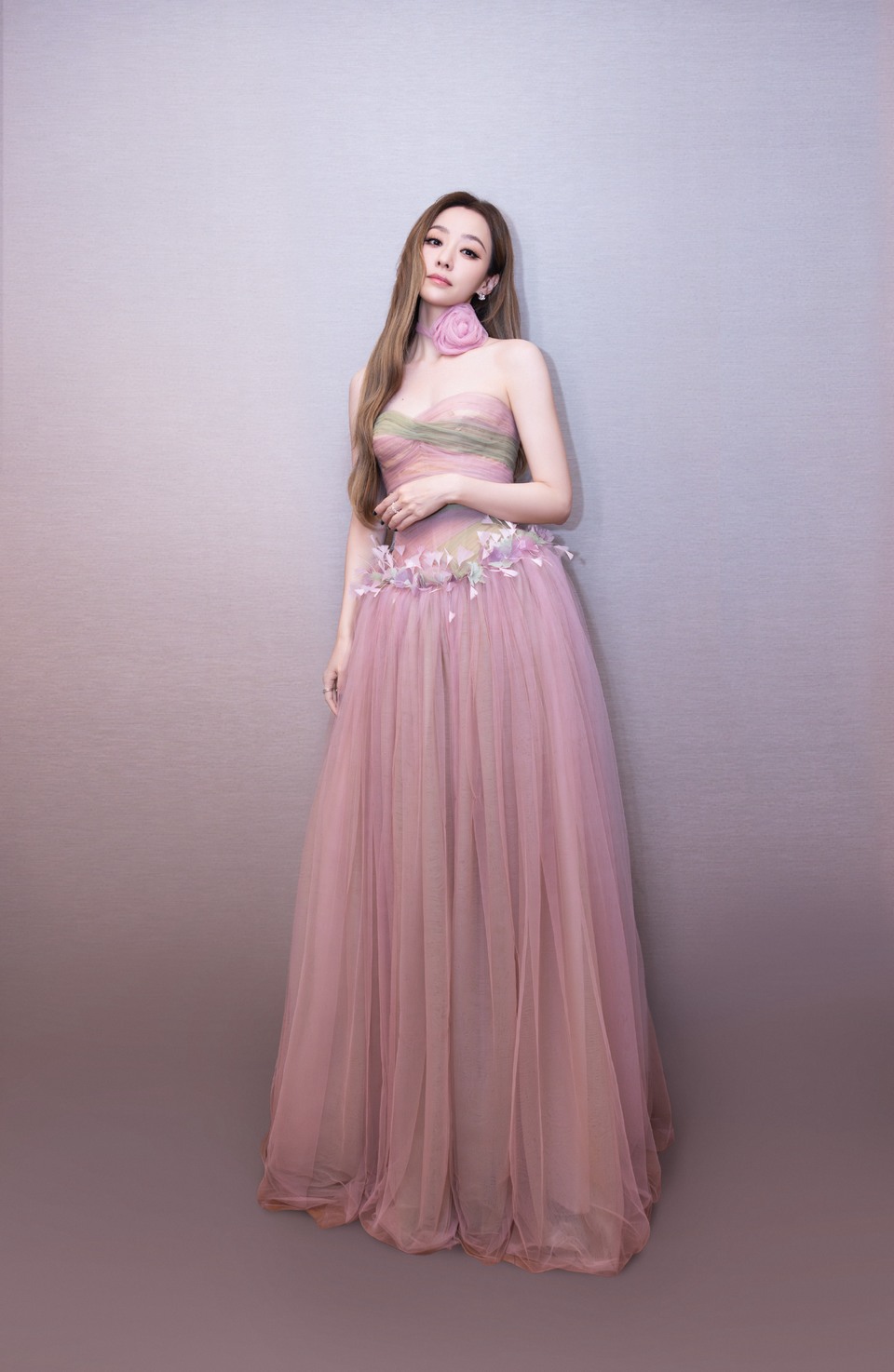 張靚穎粉色紗裙怡然優(yōu)雅 盛放之姿散發(fā)自信光芒