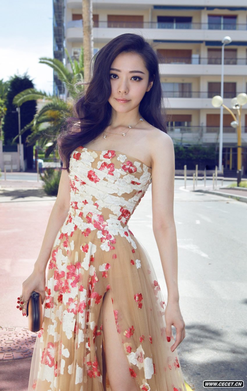 張靚穎亮相戛納紅毯 碎花禮服性感秀美腿