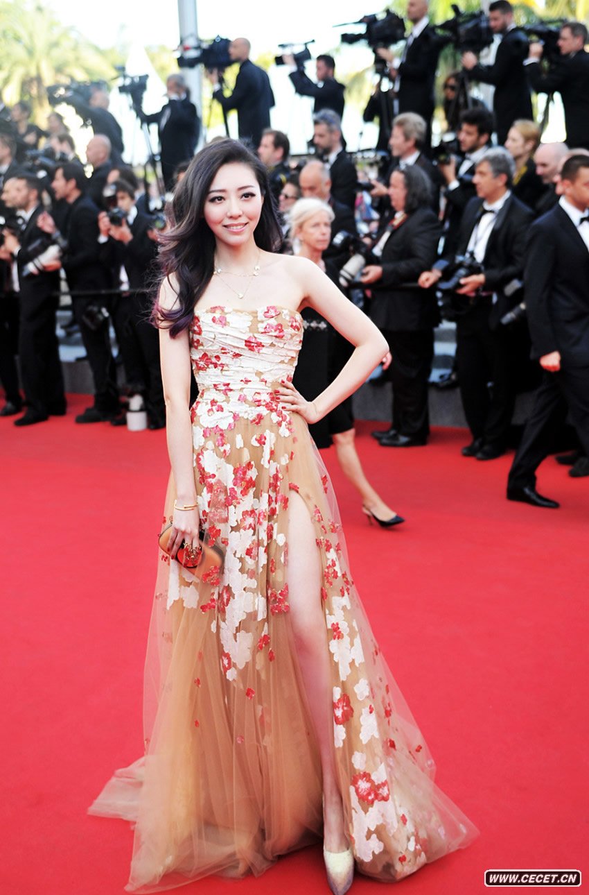 張靚穎亮相戛納紅毯 碎花禮服性感秀美腿