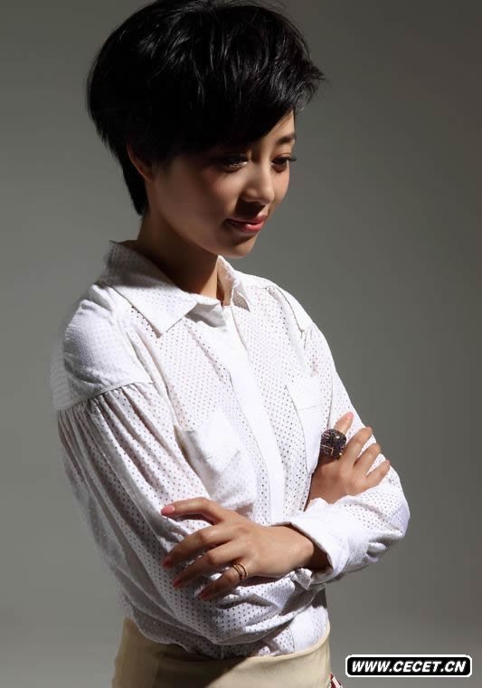 張齡心干練短發(fā)寫(xiě)真 職場(chǎng)范兒小衫笑容溫暖