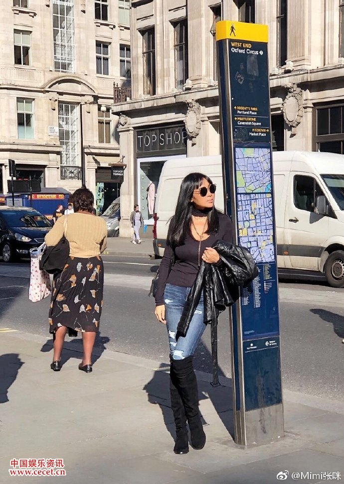 張咪緊身皮衣長(cháng)靴街拍 秀出傲人上圍和美腿