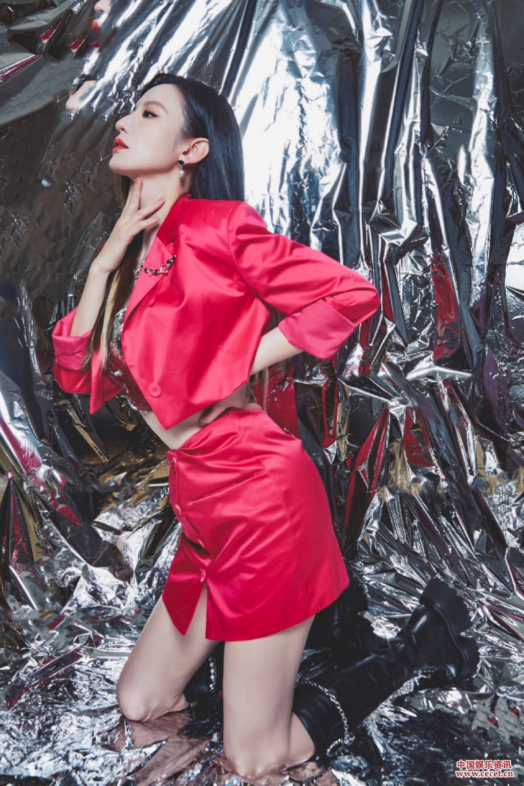 張萌紅色套裝定格靈動(dòng)光影 詮釋摩登舞臺