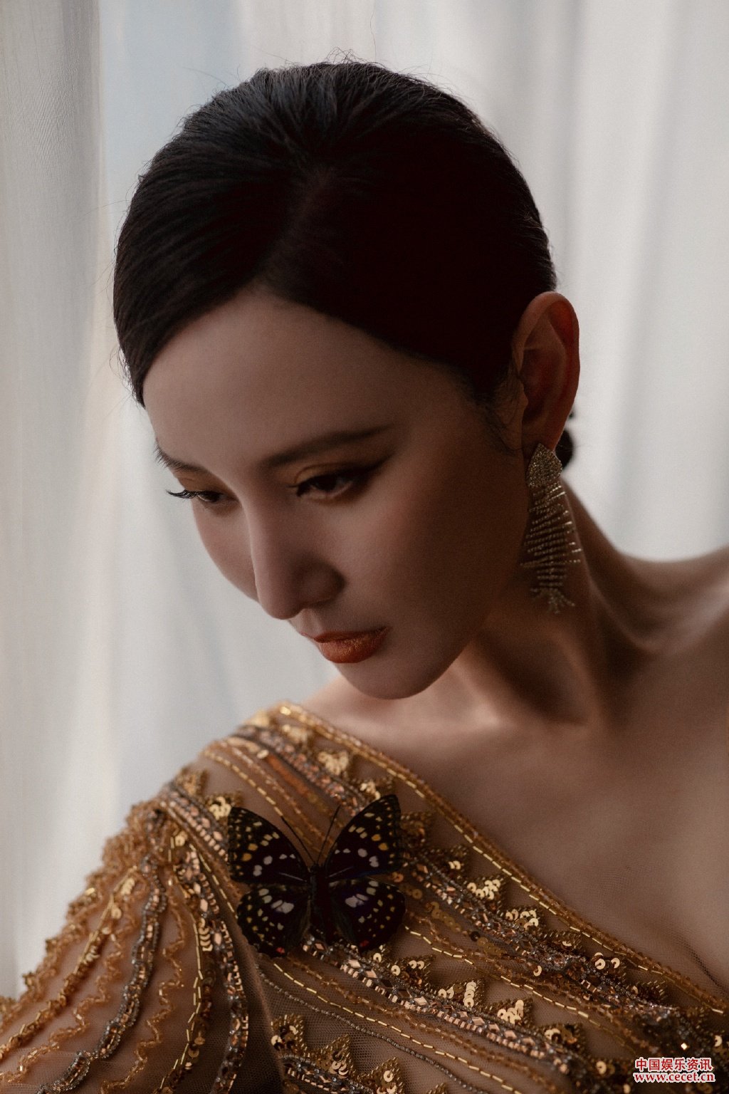 張萌身著(zhù)刺金流光溢彩裙光影間勾勒魅力線(xiàn)條