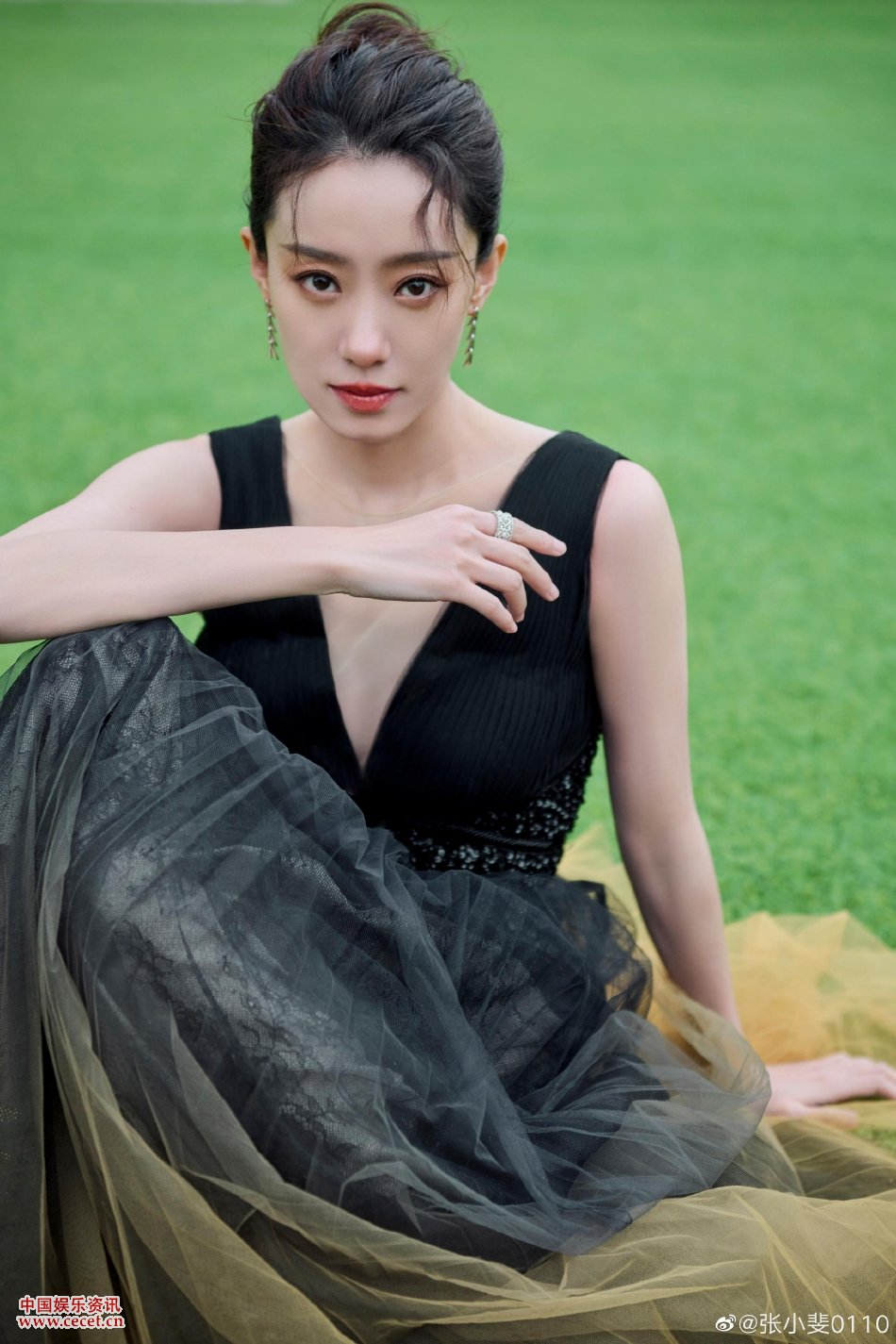 張小斐身穿深V黑色紗裙 造型清新盡展春天氣息