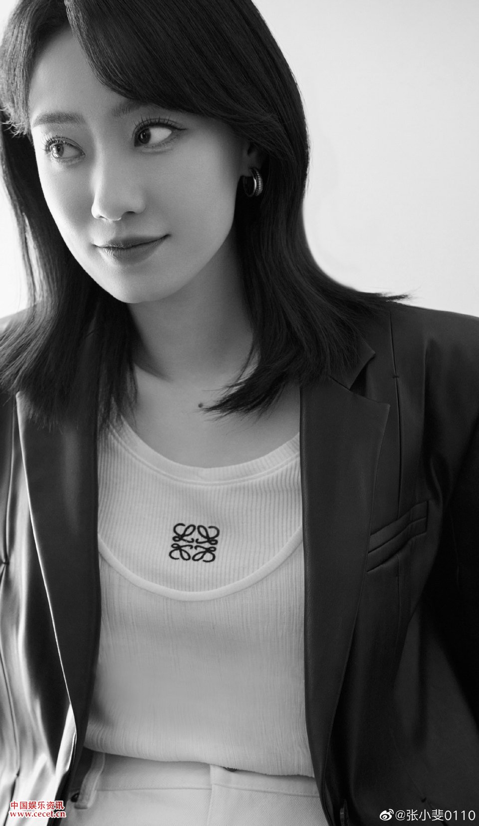 張小斐白褲黑皮質(zhì)外套 隨性大方更顯成熟之美