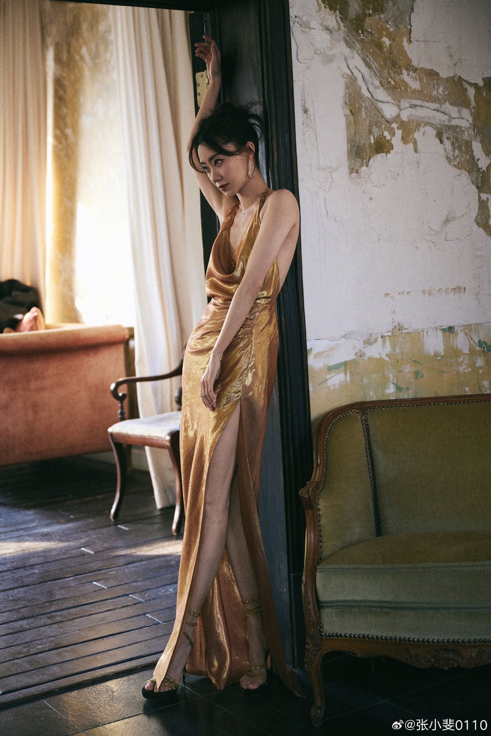 張小斐金色高開(kāi)叉禮裙 眼眸含情長(cháng)腿醒目