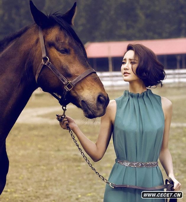 張歆藝化身綠色精靈 優(yōu)雅時(shí)尚牧場(chǎng)與馬共舞