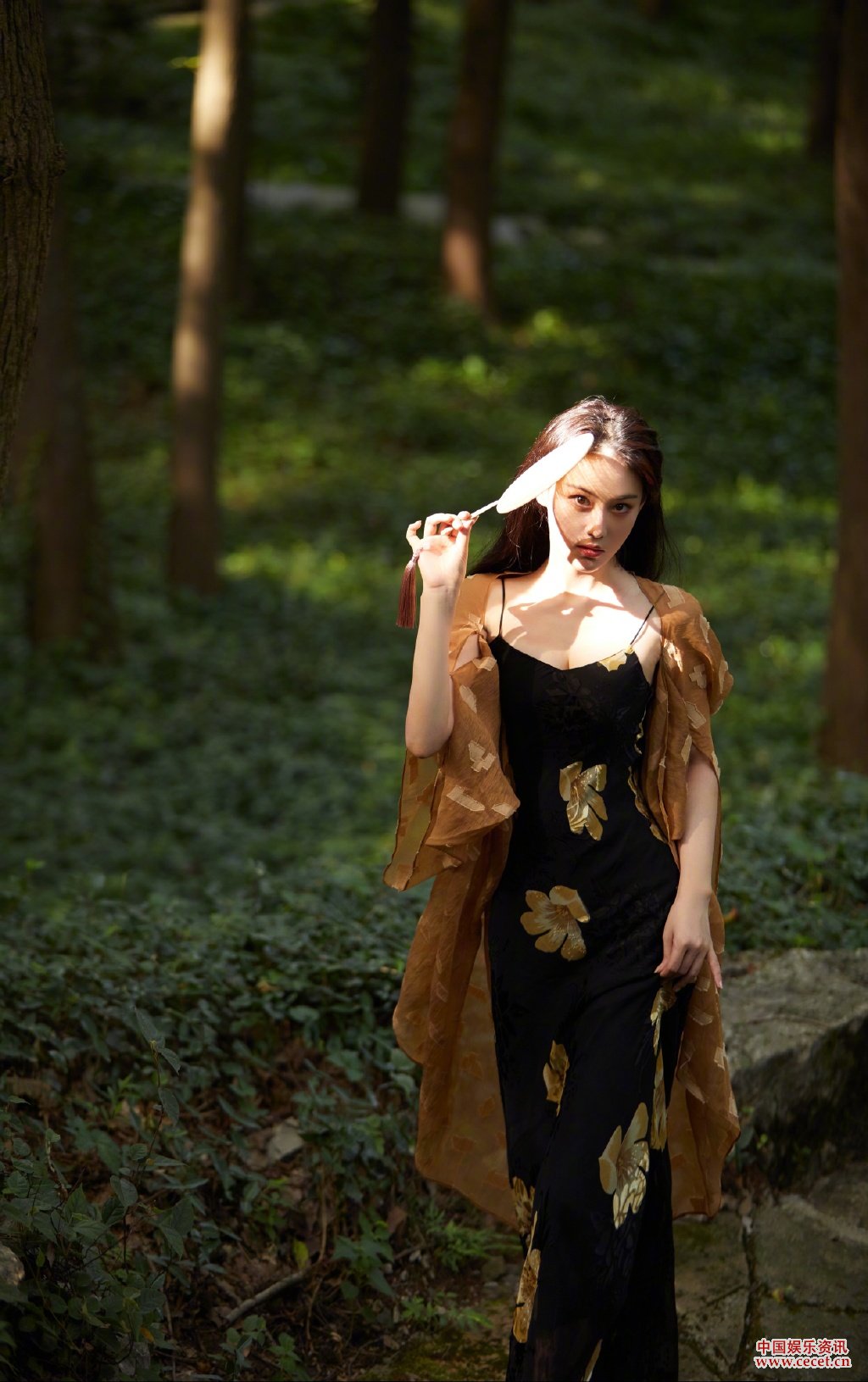 張馨予假期游玩照 置身綠樹(shù)下景美人更美