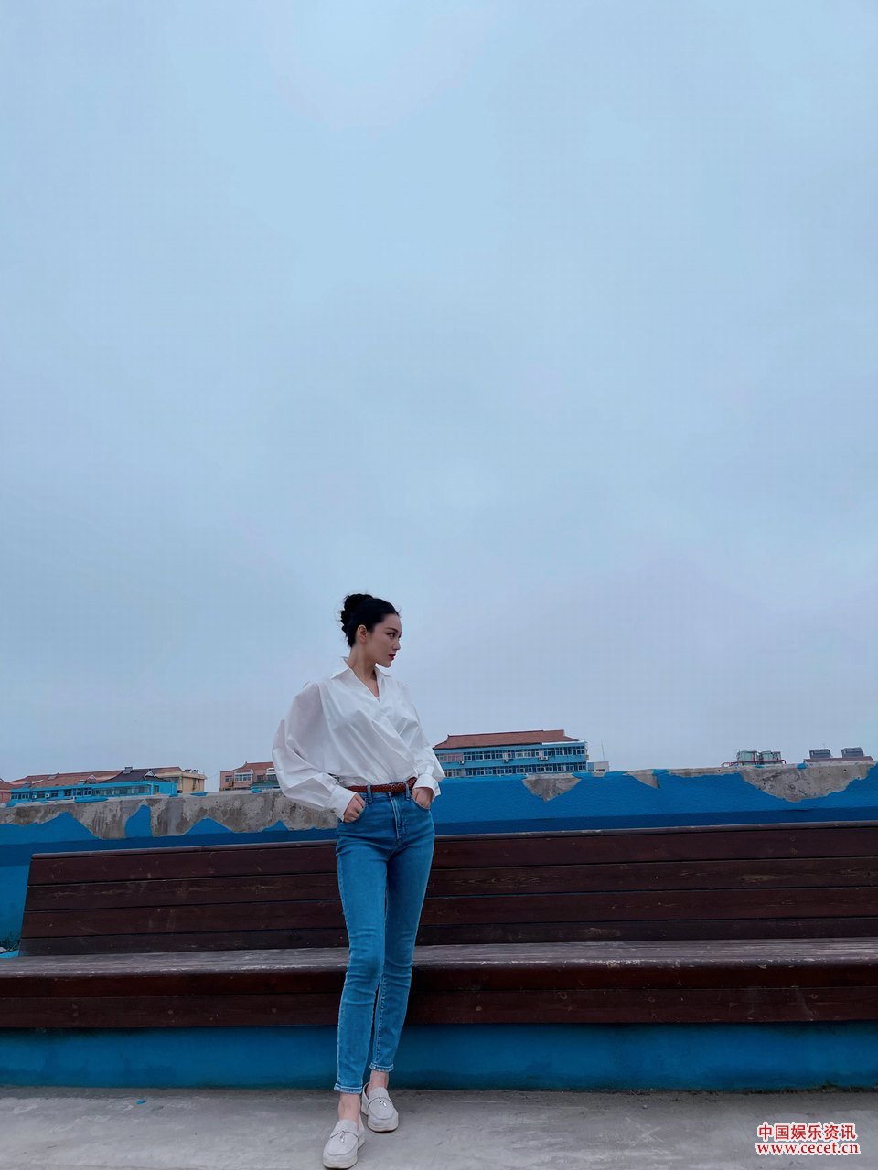 張馨予出游照 白襯衫搭配牛仔褲洋溢著(zhù)青春活力