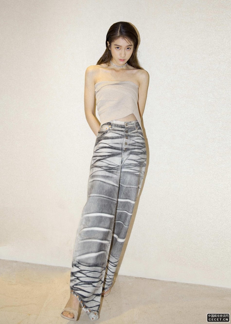 張雪迎時(shí)尚質(zhì)感寫(xiě)真 露肩上衣搭配斑馬紋闊腿褲