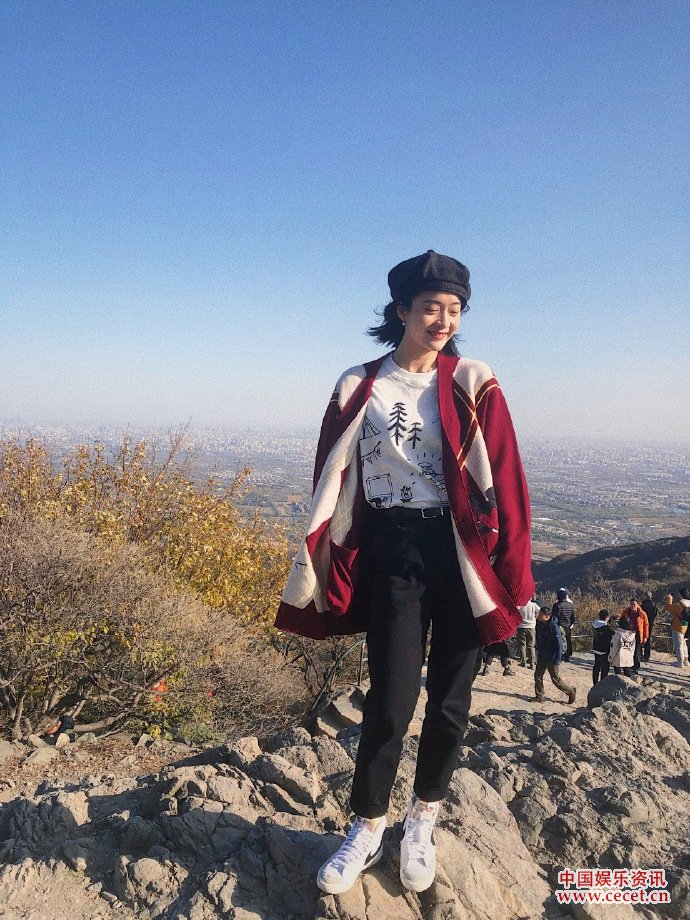 張雪迎戶(hù)外美照 紅色針織毛衣小白鞋心情不錯