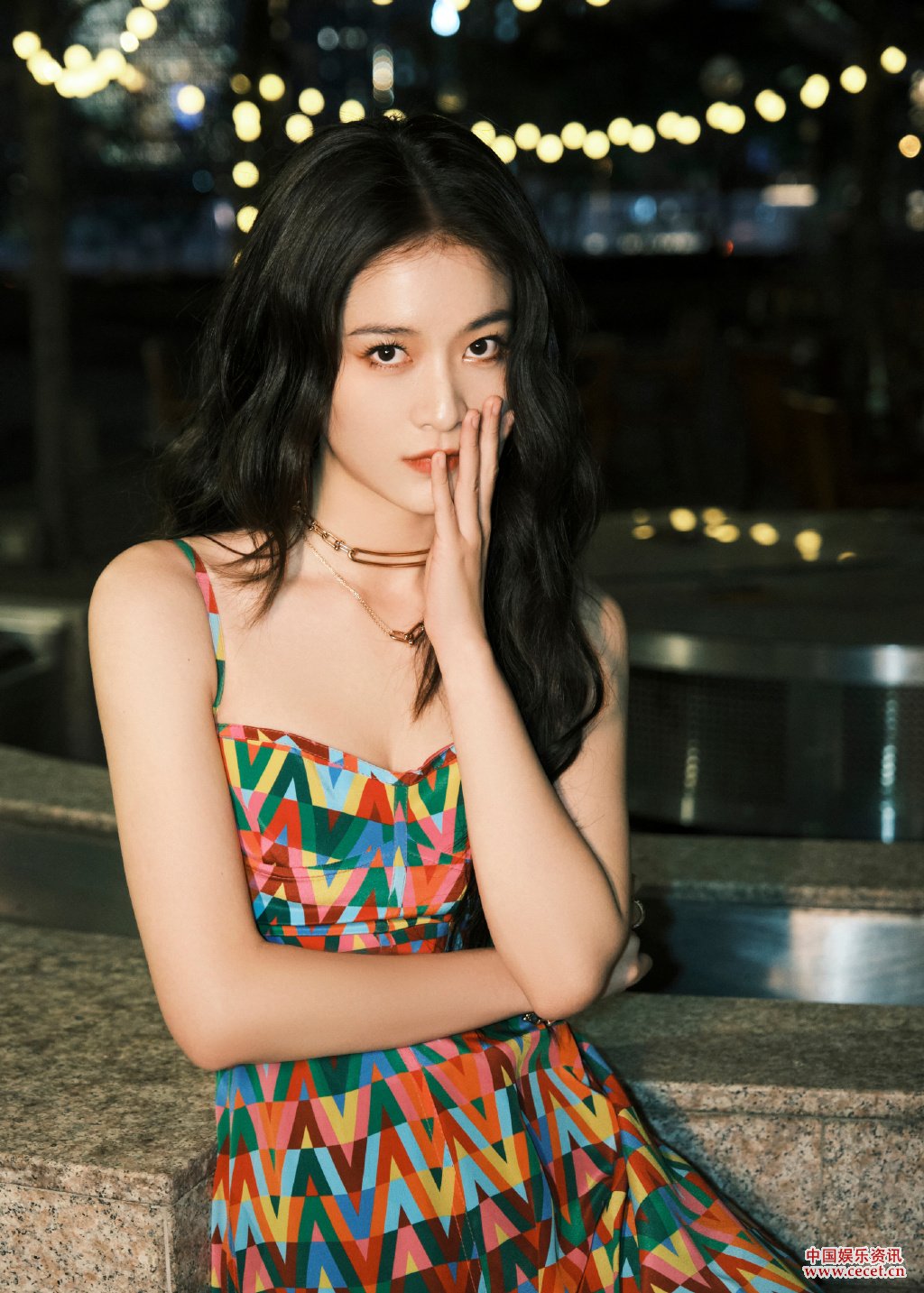張雪迎一襲斑斕幾何吊帶裙是少女的獨有浪漫