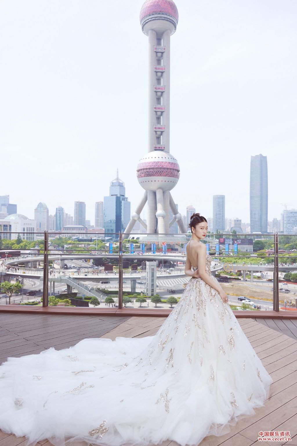 張雪迎苒苒白紗裙輕飄 在陽(yáng)光之下盡情盛放