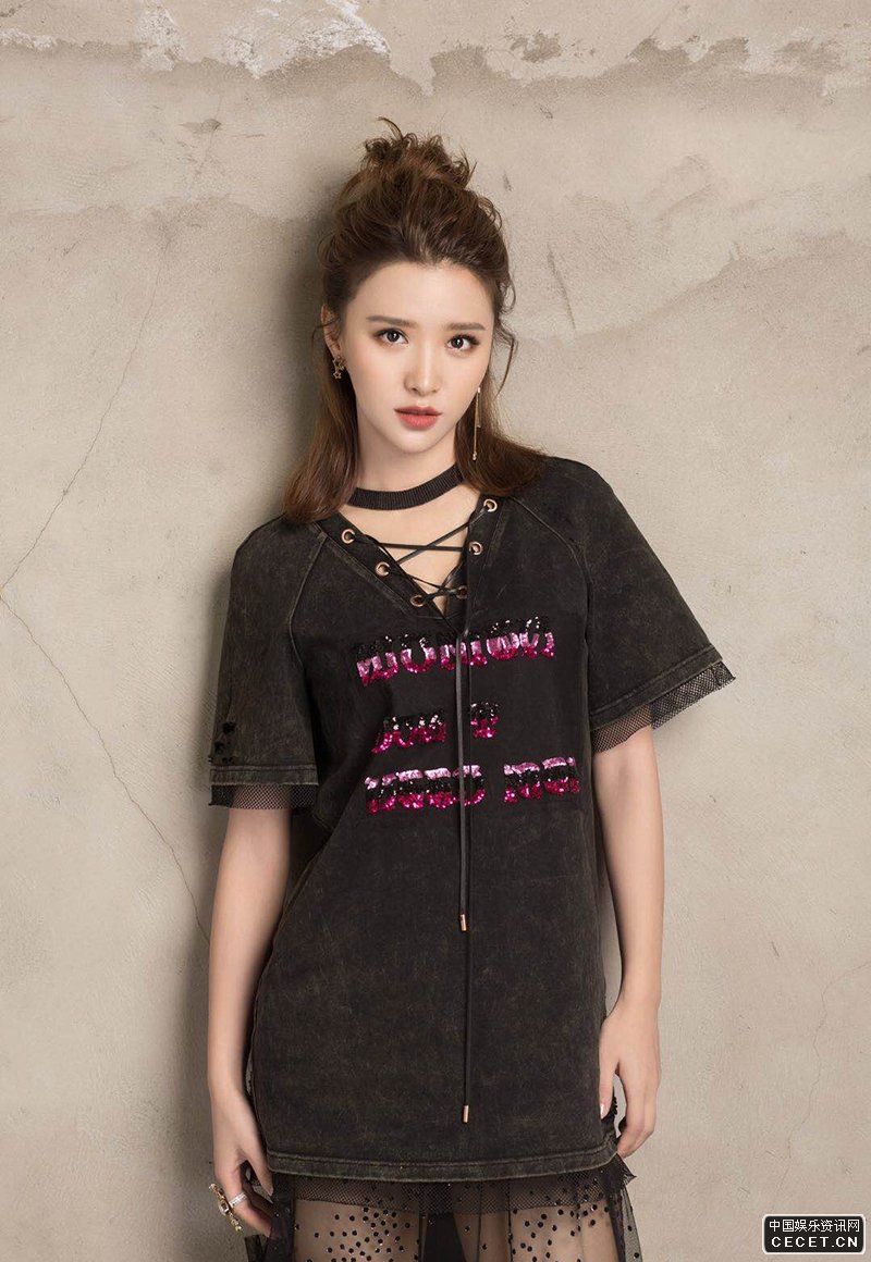 張楊果而紗網(wǎng)拼接寫(xiě)真 胸前V字型盡顯好身材
