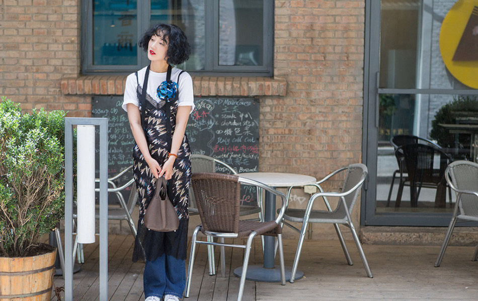 張瑤下搭牛仔喇叭褲照 整身LOOK都飄逸活潑