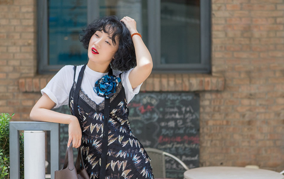 張瑤下搭牛仔喇叭褲照 整身LOOK都飄逸活潑