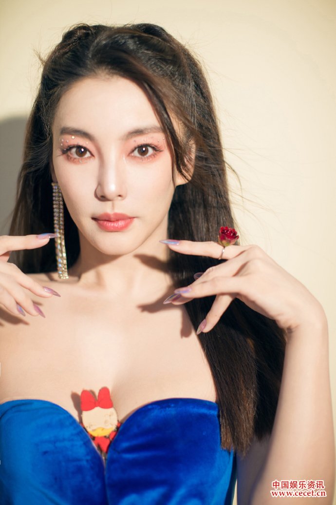 張雨綺藍色抹胸裙 胸口小玩偶巧遮身材不掩豐腴