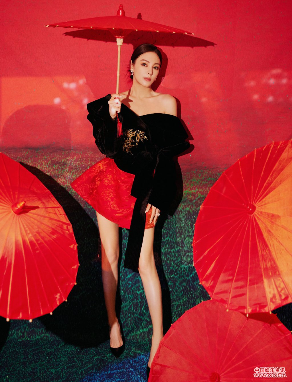 張雨綺撐傘覓怡紅 盈盈柳腰身更添迷人風(fēng)情