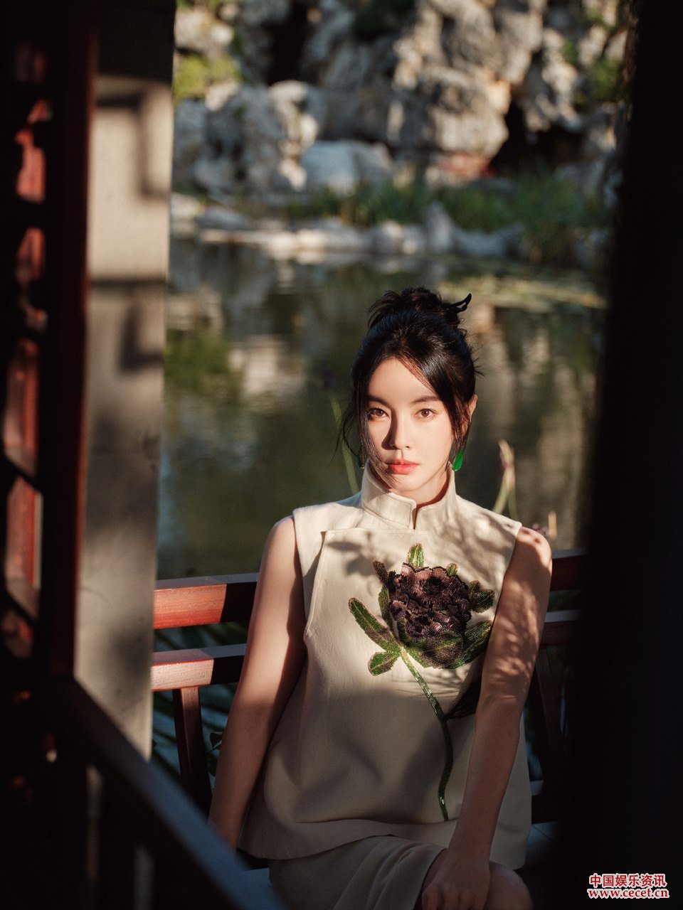 張雨綺新中式套裝美圖 庭院一隅綠翠為伴氣韻萬(wàn)千