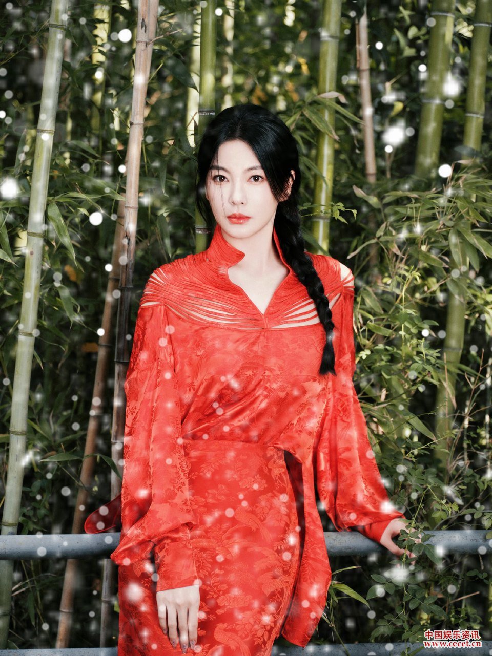 張雨綺紅衣似火綠竹搖曳 白雪漫天風(fēng)姿綽約