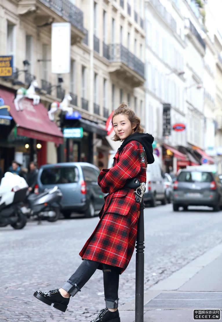 張子楓春日巴黎街拍 半丸子頭造型清爽活力