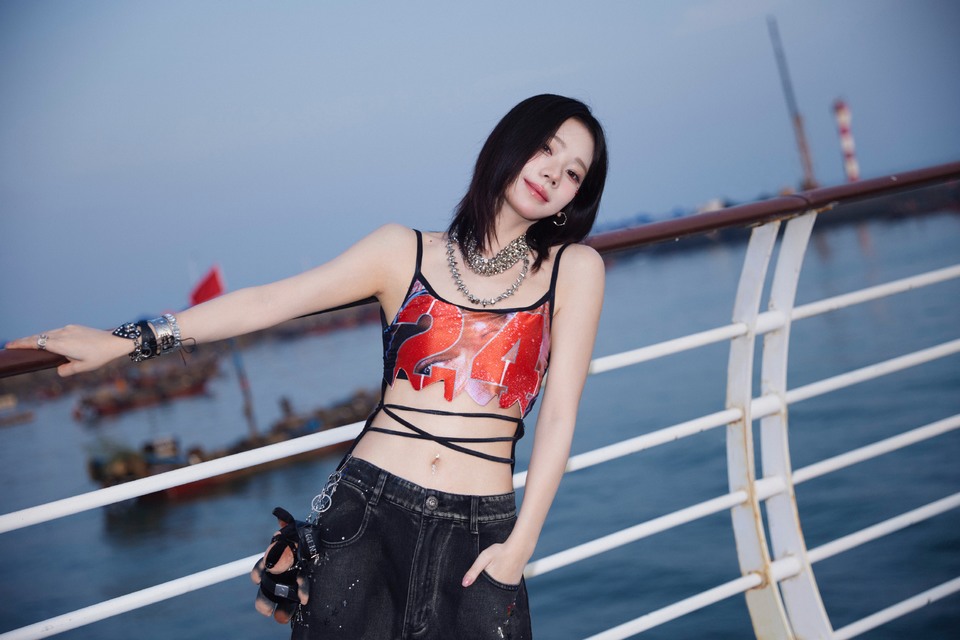 張紫寧亮色吊帶展現酷辣夏日 復古短褲點(diǎn)綴星星點(diǎn)點(diǎn)