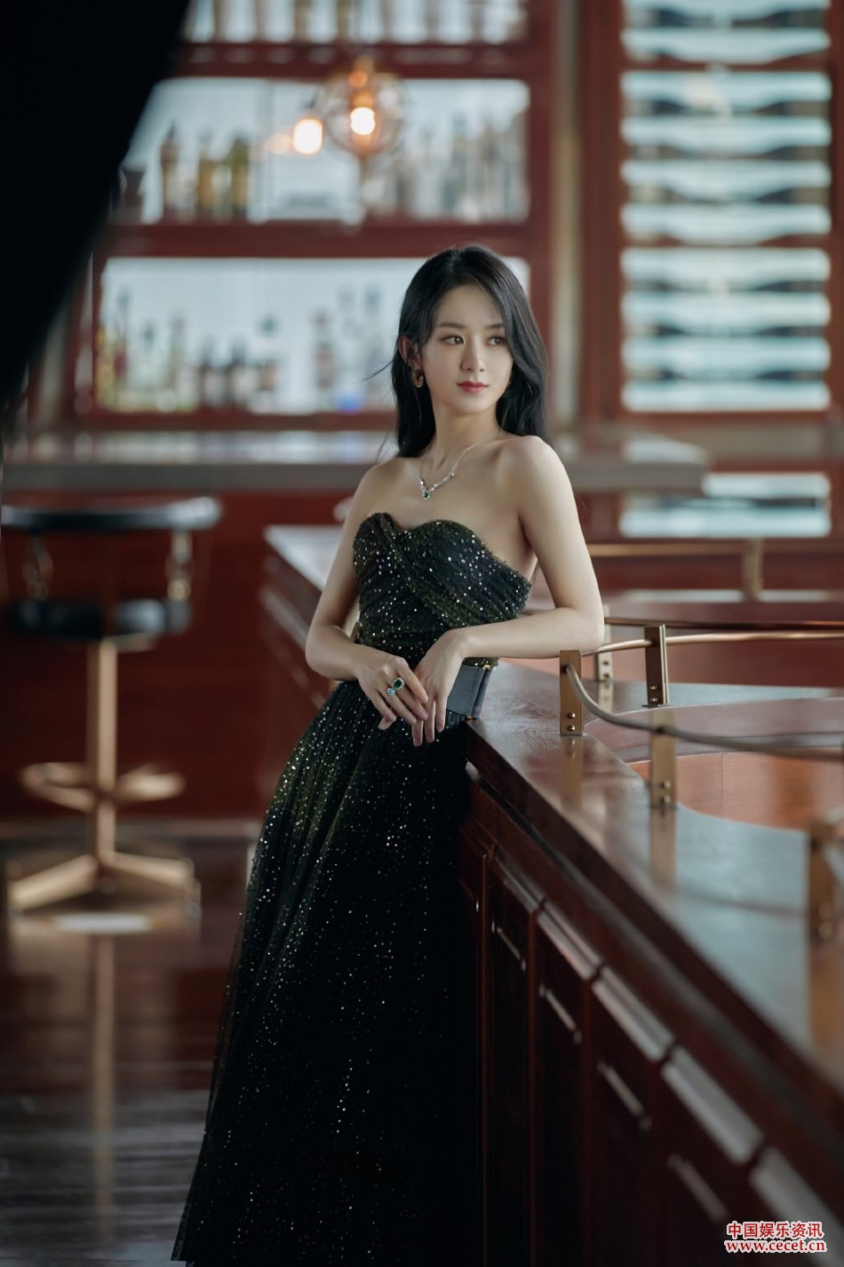 趙麗穎黑色抹胸裙寫(xiě)真 優(yōu)雅性感端莊大氣