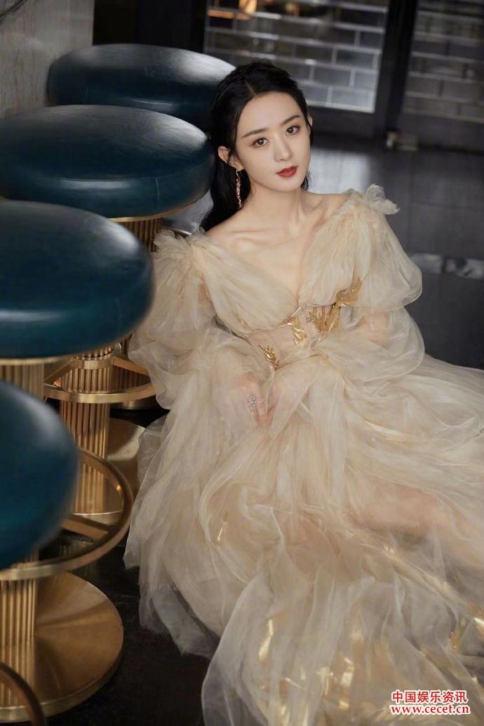 趙麗穎輕紗鎏金裙造型 舉手投足盡顯溫婉氣質(zhì)