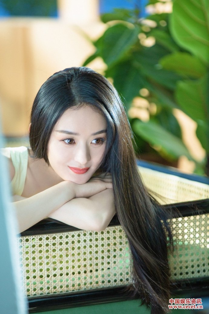 趙麗穎吊帶裙清新優(yōu)雅 黑長(cháng)直發(fā)型溫婉恬靜