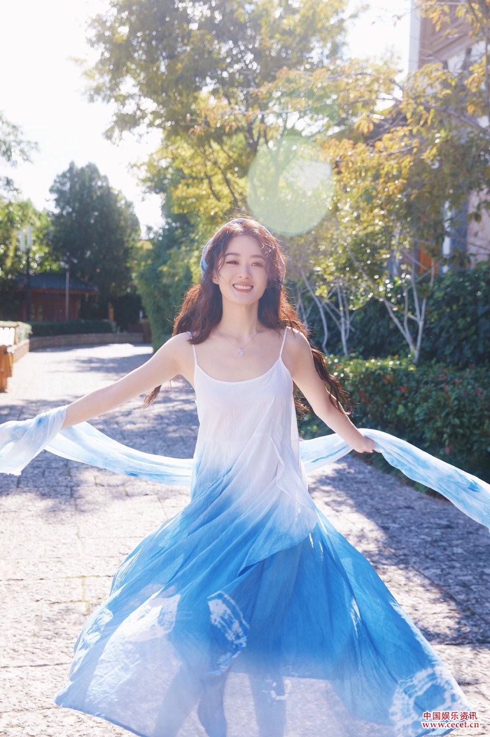 趙麗穎在山腳云光下恣意奔跑 頻笑悠然定格瞬間