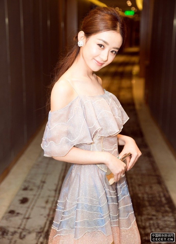 趙麗穎一襲露肩禮服 妝容清淡十分的端莊大方