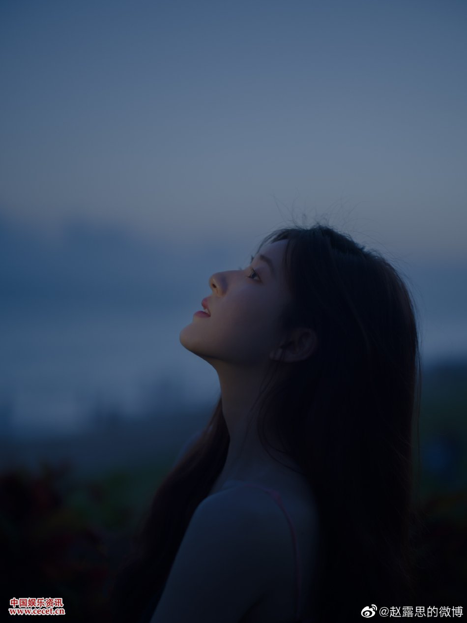 趙露思海邊光影感大片 吊帶小黑裙秀出香肩美背