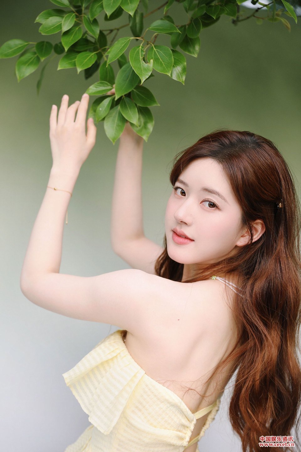 趙露思黃色抹胸短裙照 如檸檬少女般清新自然
