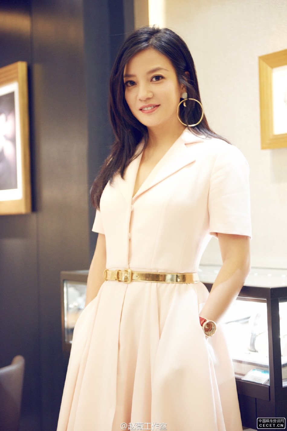 趙薇現身某活動(dòng) 粉裙戴超夸張耳環(huán)知性?xún)?yōu)雅