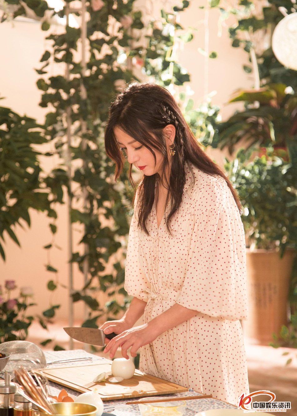 趙薇長(cháng)發(fā)披肩波點(diǎn)紗裙置身花叢中似仙子超美