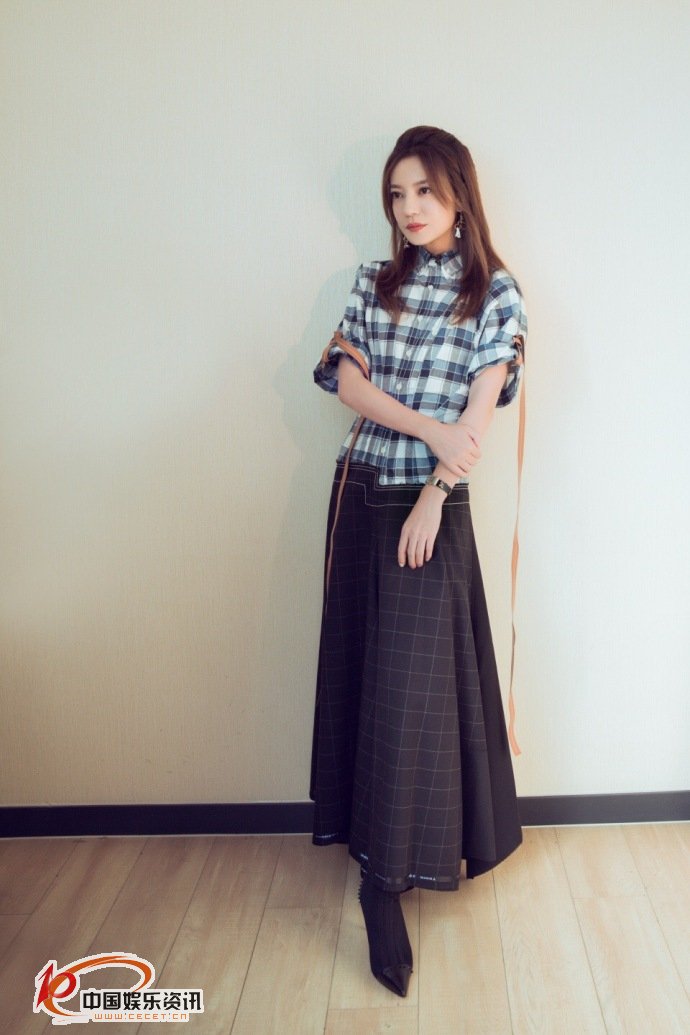 趙薇格紋襯衫裙照 收腰襯衫盡顯纖細好身材