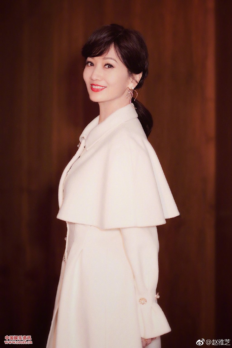 趙雅芝白色大衣美照 凝視鏡頭溫柔端莊高雅