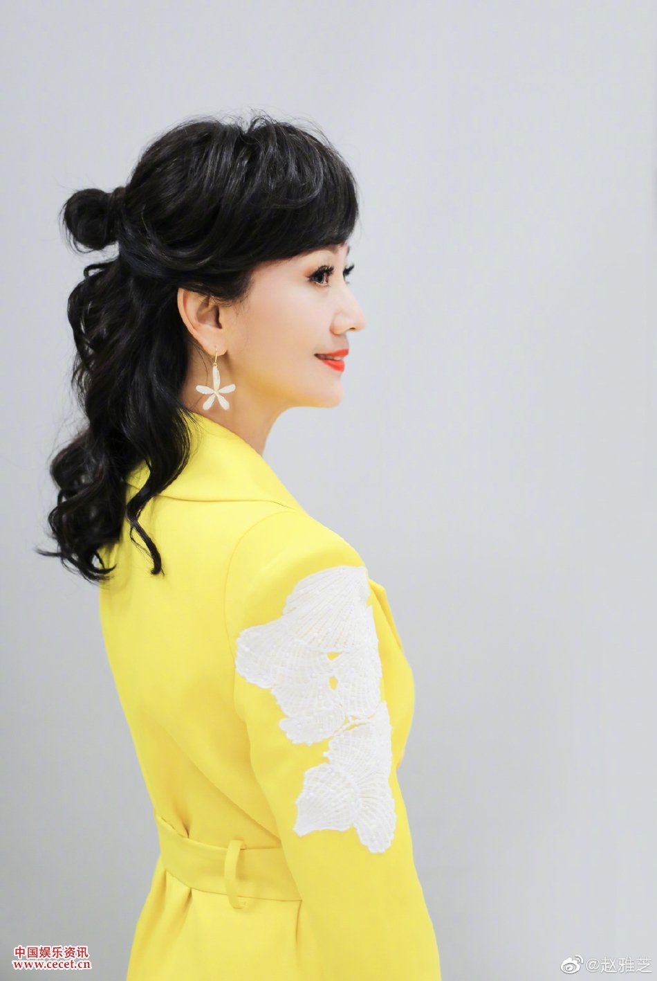 趙雅芝檸檬黃連衣裙美照 紅唇嬌艷保養得宜