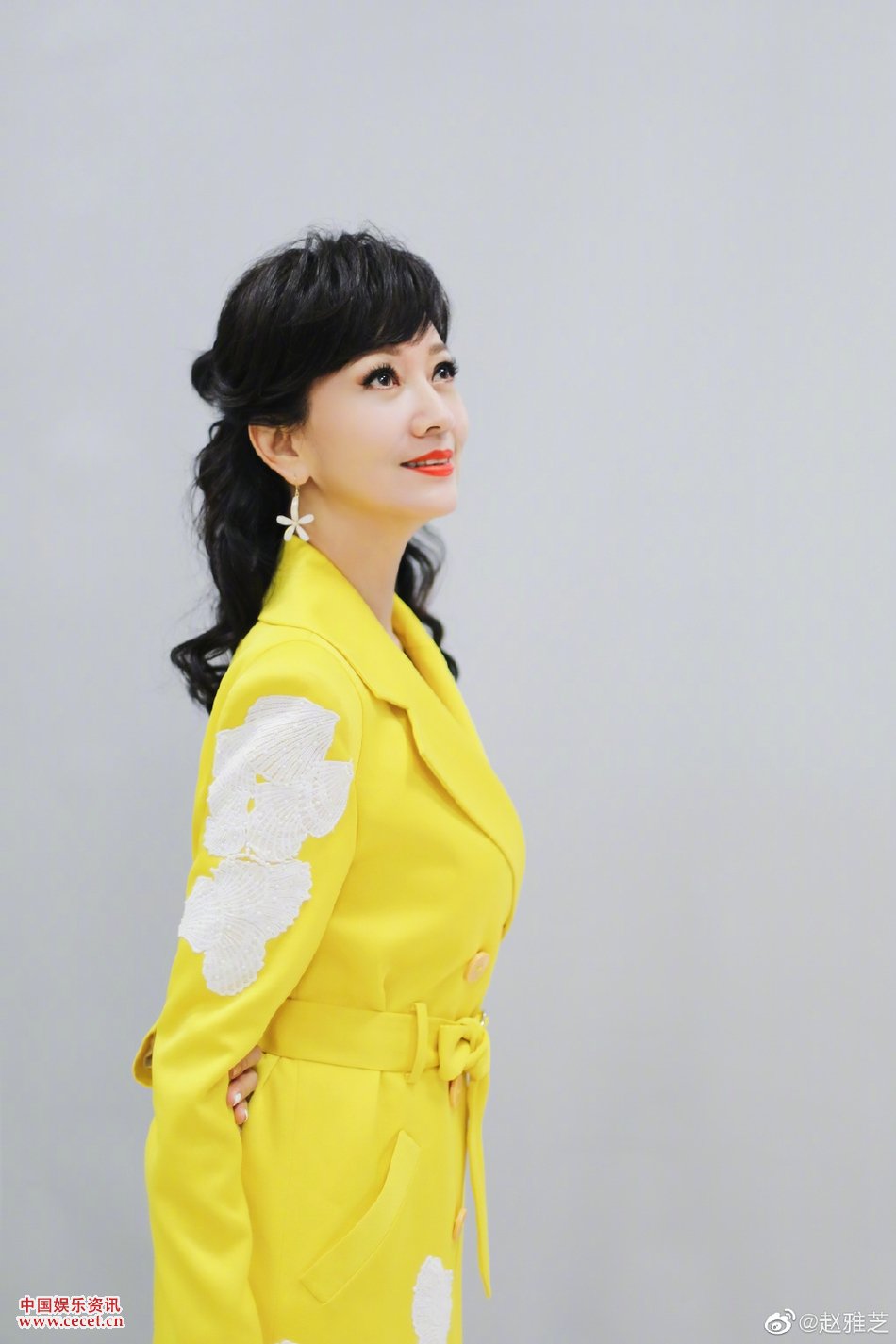 趙雅芝檸檬黃連衣裙美照 紅唇嬌艷保養得宜