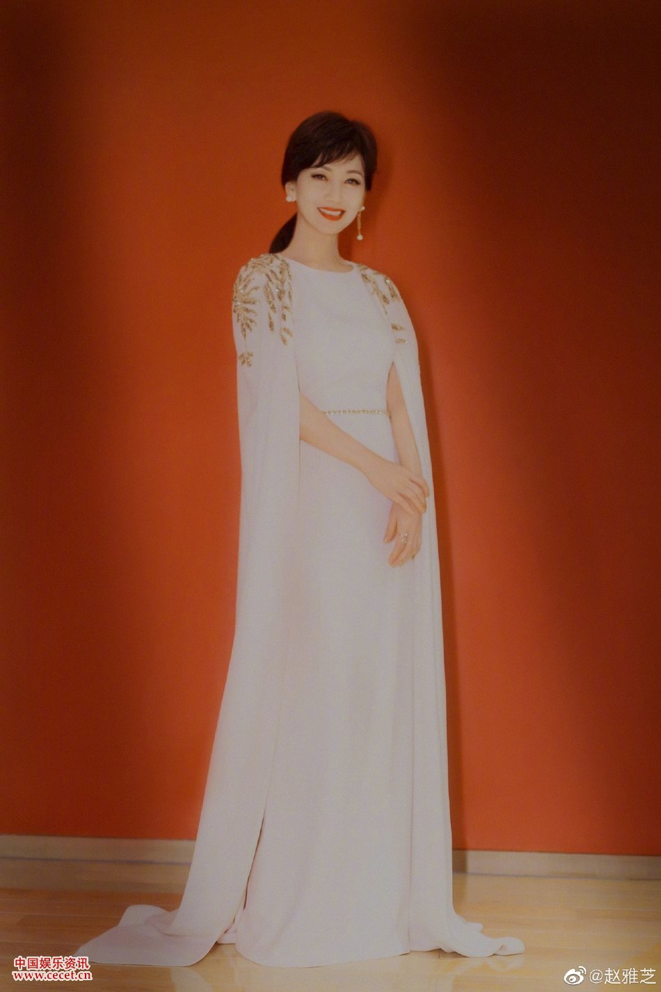 趙雅芝白色長(cháng)裙美照 披著(zhù)刺繡長(cháng)披肩優(yōu)雅端莊