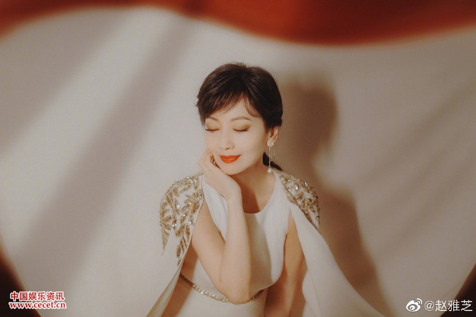 趙雅芝白色長(cháng)裙美照 披著(zhù)刺繡長(cháng)披肩優(yōu)雅端莊