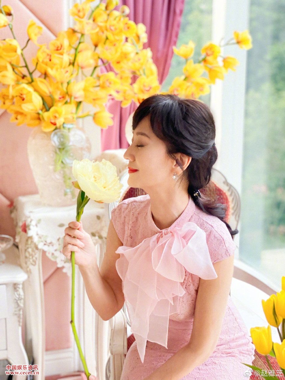 趙雅芝粉色蕾絲裙美照 腰身四肢纖細皮膚白嫩