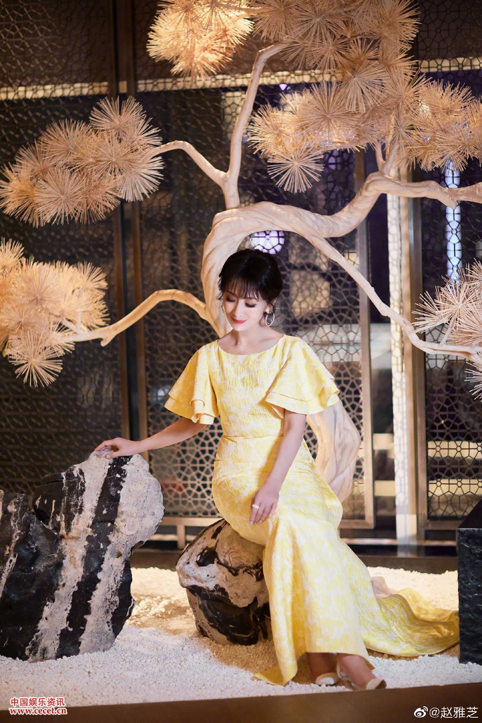 趙雅芝一襲荷葉袖金色長(cháng)裙 氣質(zhì)優(yōu)雅高貴