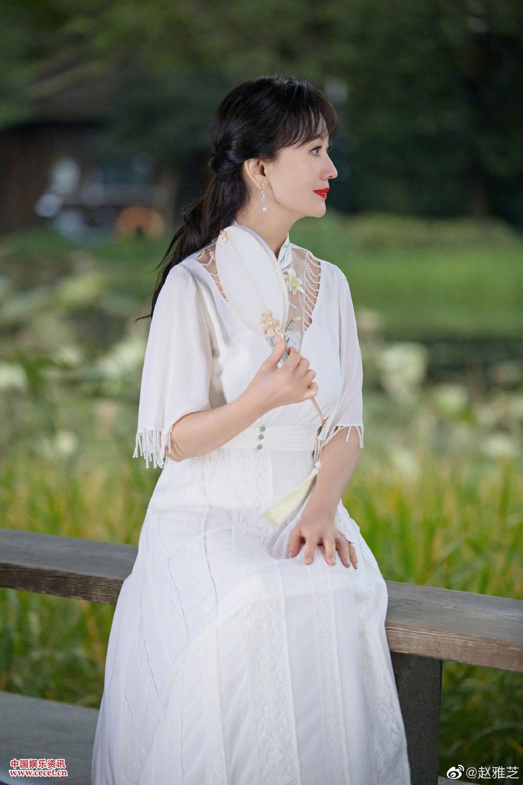 趙雅芝白裙置身綠林中 落葉滿(mǎn)地感受浪漫詩(shī)意