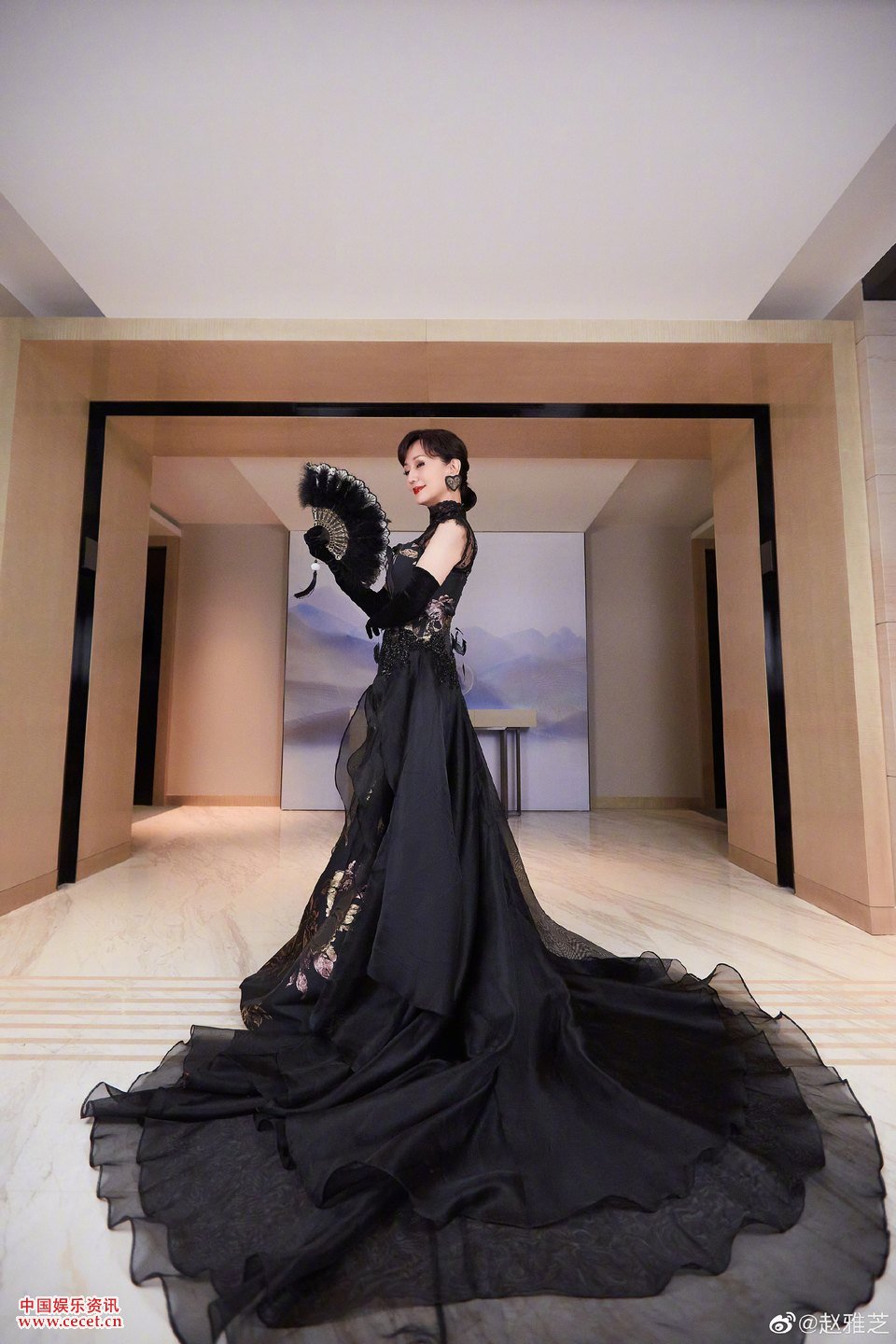 趙雅芝黑色拖尾長(cháng)禮裙 共赴一場(chǎng)暗夜盛宴